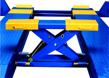 剪叉式舉升機屬于一種特殊液壓升降機,可使得汽車中心(或質心)處于立柱的中間位置,對于皮卡和箱式貨車等類型的汽車的日常維修來說這種對稱式舉升機可能是很好的選擇。但是對于一些柱間寬度不夠大的對稱式雙柱式舉升機來說,汽車舉升后不能打開車門是一個很大的缺點。非對稱式舉升機的立柱向后旋轉了一個角度(大約30°),并且前臂比后臂稍微短一些。當把汽車停放到這種非對稱式的舉升機適當位置時,車的位置就向后移動了一些,因此,我們就很容易地從車門進出。而且,這種非對稱式舉升機轉動的立柱,可以確保車輛的重心安全地定位在立柱之間。